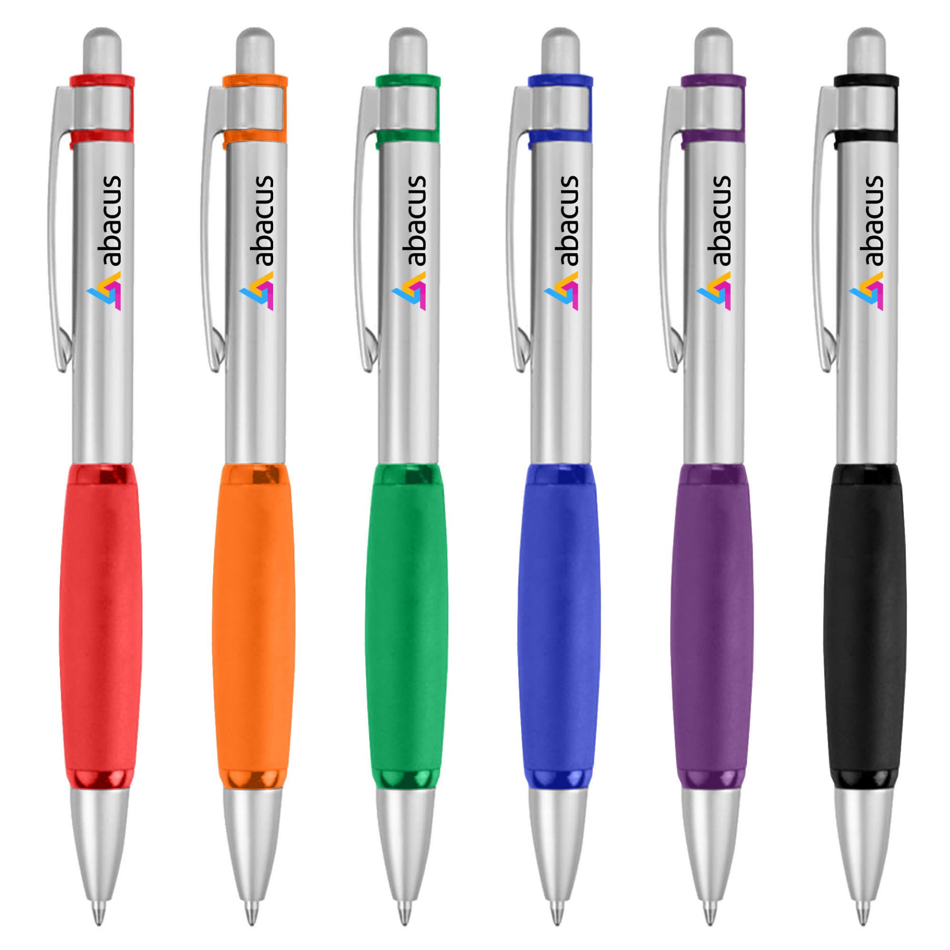 Most popular and cost effective metal pen matt silver barrel with soft-touch rubber grip in a range of 6 colours supplied with plastic Parker-Type German manufactured black ink refill 1200 meters writing distance tungsten carbide ball provides you with quality writing.