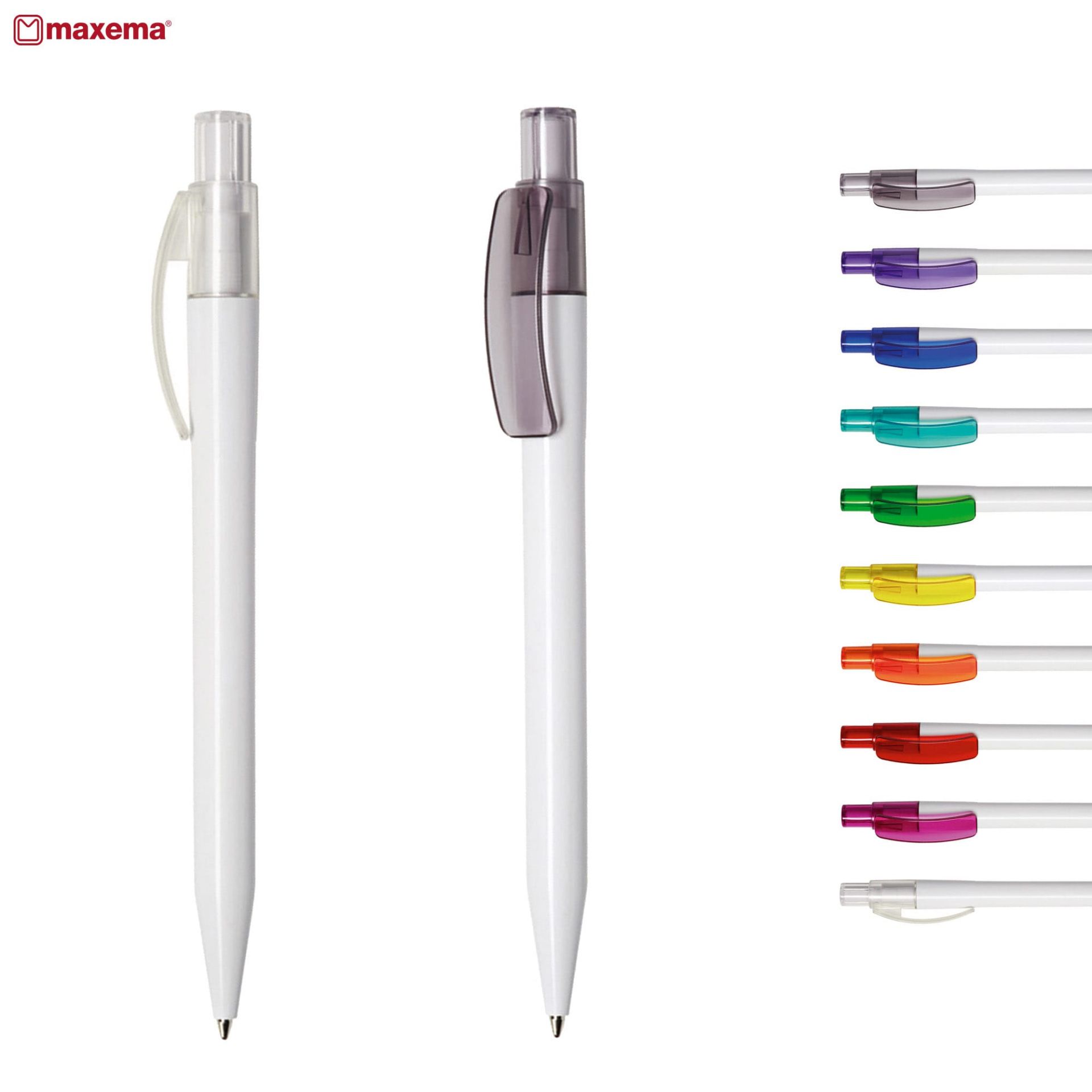 Maxema a premier Italian brand renowned for precision and elegance. The Pixel a pen that epitomizes contemporary fashion trends with precision. Its square design exudes essential lines and a refined elegance. The push-button top seamlessly merges captivating styling with EU small component regulations ensuring safety with boreholes for adequate air flow. The broad essential clip proudly accentuates The Pixel's silhouette designed to enhance the corporate image of forward-thinking companies. Featuring a glossy white barrel complemented by a transparent colourful clip and top button it boasts a retractable ventilated push-button design crafted from non-toxic highly resistant ABS plastic. Equipped with an X-20 refill available in black or blue ink capable of producing up to 2000 meters of writing. Exclusively available through the Dex Collection in Australia and New Zealand with a minimum order of 1000 units per colour. Designed and crafted in Italy.