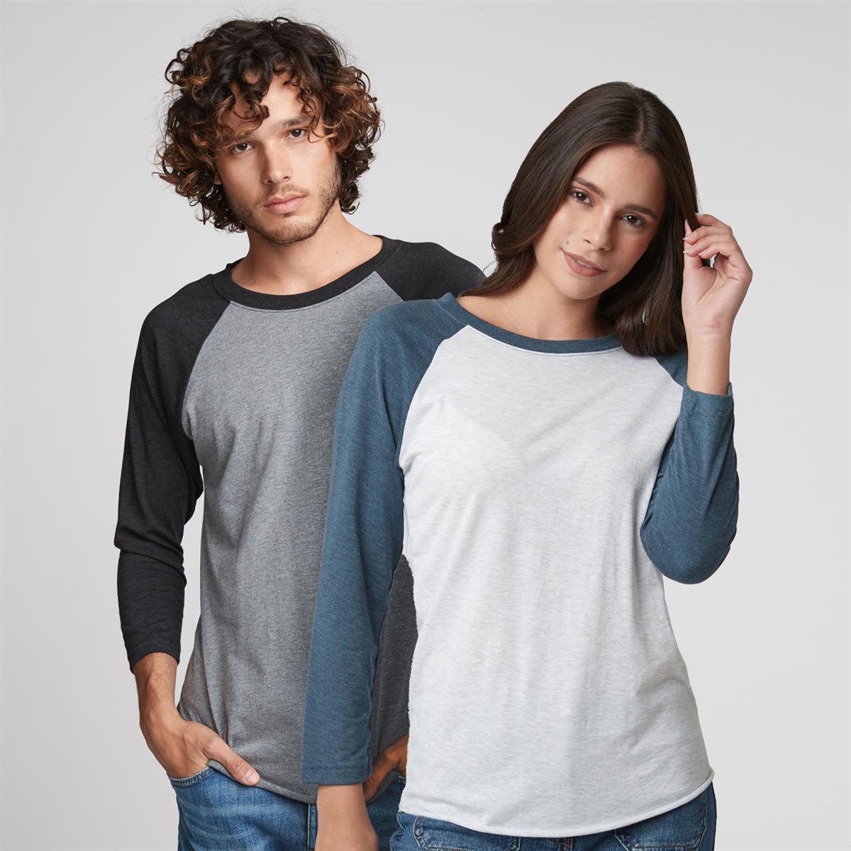 Our perfect blend ¾ Raglan t-shirt is incredibly soft with great drape, stretch and recovery. The Raglan is a comfortable tee to wear and with a great vintage look, it pairs beautifully with jeans. Specifications * Fabric: 32 Single Poly/ Cotton/ Rayon Jersey * 145g 4.3oz 50% Poly 25% Combed Ring-Spun Cotton 25% Rayon. Tri-Blend 1X1 Baby Rib * Label: Satin * *Tri-Blend Has a Heather Look For All Colours